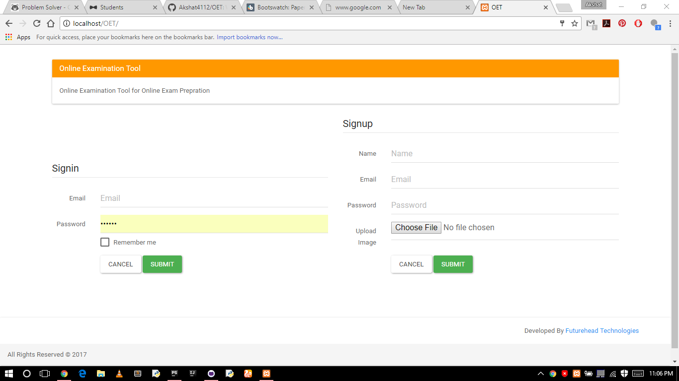 On the certain time examine gets the message to start the examination. All answers given by examine are saved into the server with his/her profile information.